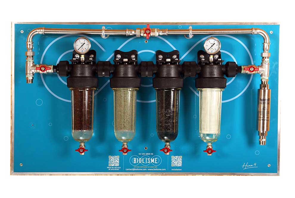 C’est cela. Destinée aux particuliers, la gamme HEXA filtre les microparticules et micropolluants de votre eau, la redynamise, le tout en préservant ses minéraux essentiels. Installée sur l’arrivée générale d’eau, toute la famille en profite pour les douches et l’hydratation, jusqu’aux animaux et aux plantes. Elle inclut des systèmes adaptés à l’eau du réseau et aux eaux de puisage.