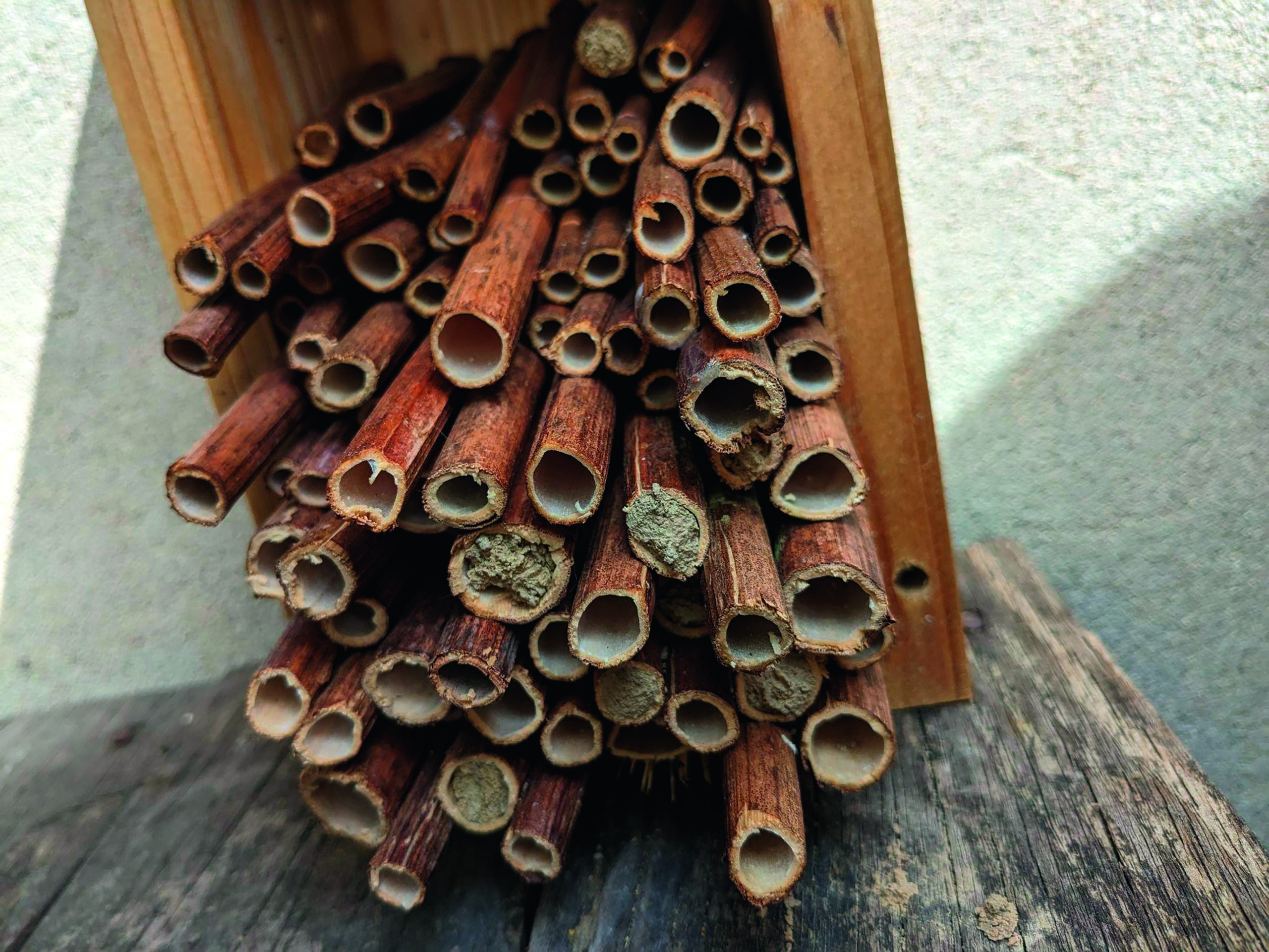 Les abeilles sauvages sont très utiles pour faire pousser des concombres, des courgettes ou des arbres fruitiers. Fabriquer un abri à abeilles sauvages et laisser fleurir quelques « mauvaises herbes » dans son jardin, c’est participer à leur protection. Et pas de crainte : la plupart des abeilles sauvages ne sont pas du tout agressives. Contrairement aux abeilles domestiques, elles n’ont pas de miel ou de colonie à défendre. Un abri à abeilles sauvages, réalisé avec des branches de renouée du Japon. Pour la construction, quelques conseils : utilisez des branches de renouée du Japon bien sèches, veillez à ce que la profondeur du trou soit d’au moins 5 ou 6 cm, assurez-vous que chaque tige ait un côté ouvert et un côté fermé (le côté ouvert vers l’extérieur pour permettre à l’abeille de rentrer), mélangez différents diamètres en évitant les trop gros (au-dessus de 8 mm), et n’hésitez pas à ajouter des tiges très fines pour les toutes petites abeilles.