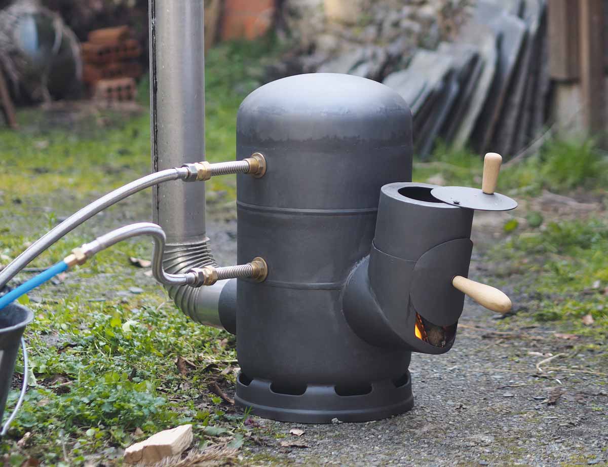 En complément de panneaux solaires thermiques, il peut être intéressant de mettre en place un poêle bouilleur. Ce dispositif présente le double avantage d’assurer un chauffage efficace de la maison et, lorsqu’il est relié à un ballon thermique, de produire également de l’eau chaude sanitaire. Comme pour les panneaux solaires thermiques, un serpentin circule à l’intérieur du corps de chauffe du poêle, où le fluide est réchauffé durant la combustion du bois. Coupler ces deux systèmes garantit ainsi une production d’eau chaude sanitaire en toutes saisons, quelles que soient les conditions météorologiques.